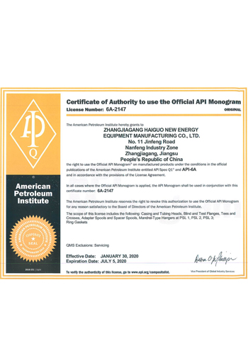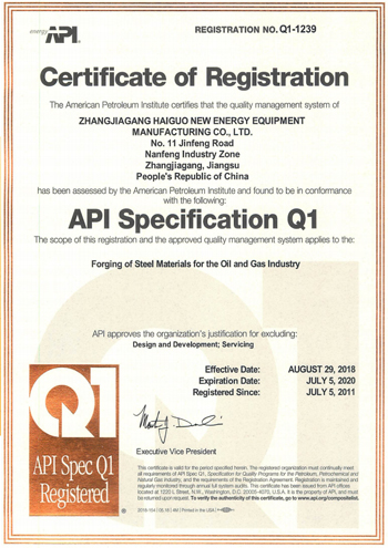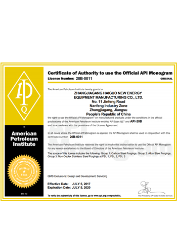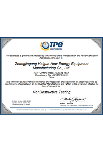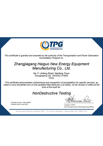 公司取得了美國ABS、法國BV、中國CCS、挪威DNVGL、韓國KR、英國LR、日本NK、意大利RINA等全球八大船級社的工廠認證證書,建立了完善的產品質量管理體系。先后獲得了美國API20B資質證書、API6A資質證書、APIQ1體系證書、TPG的NDT認證證書、TPG 熱處理認證證書、歐盟PED等認證證書,同時也通過了一些國際客戶具有高度專業(yè)要求的資格認證。